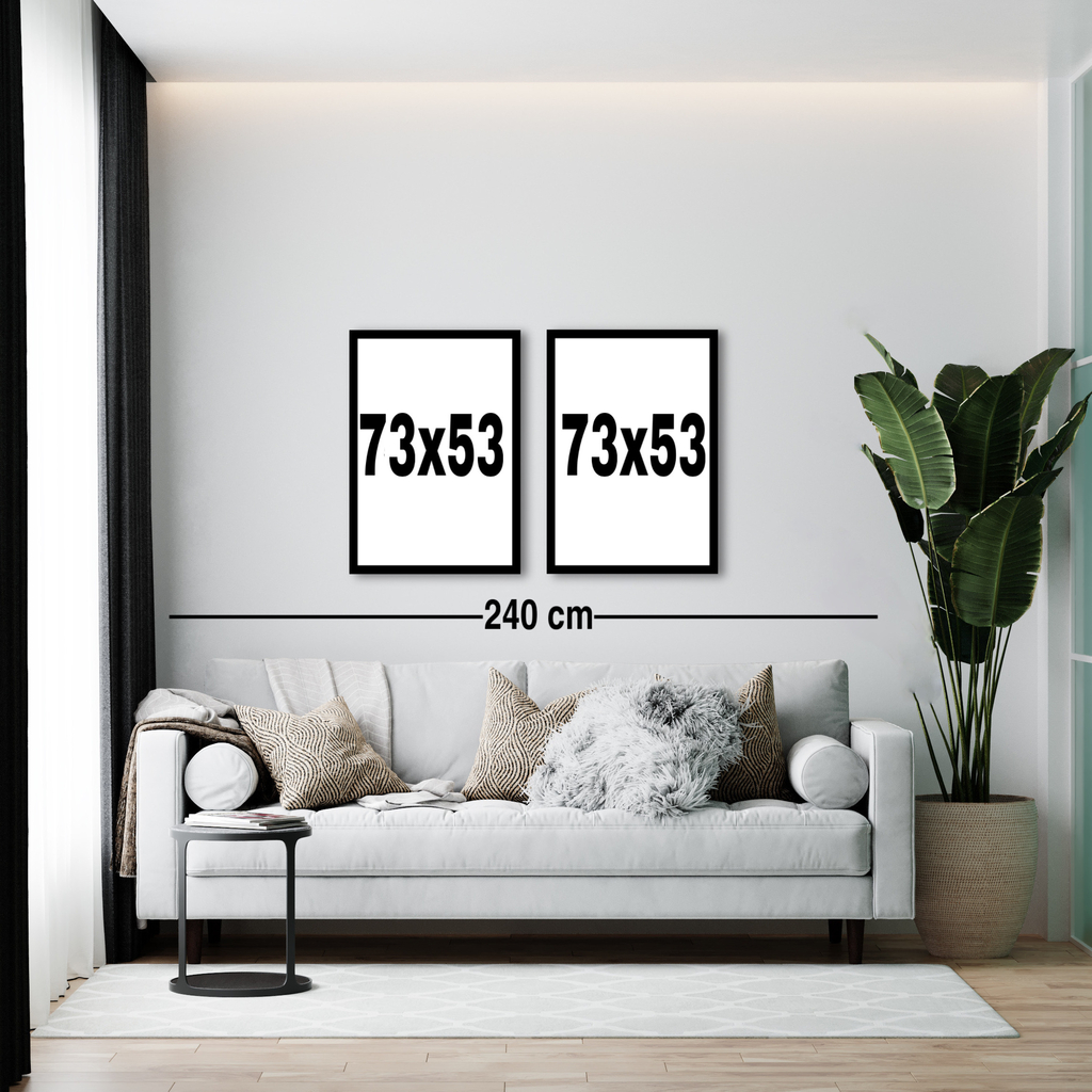 Para saber o tamanho ideal do conjunto de quadros para o seu ambiente é necessário ter a metragem da parede e do móvel, sofá ou cama que estejam próximos de onde será colocado os quadros. Logo abaixo na ilustração te orientamos para você ter uma noção de tamanho e proporção.