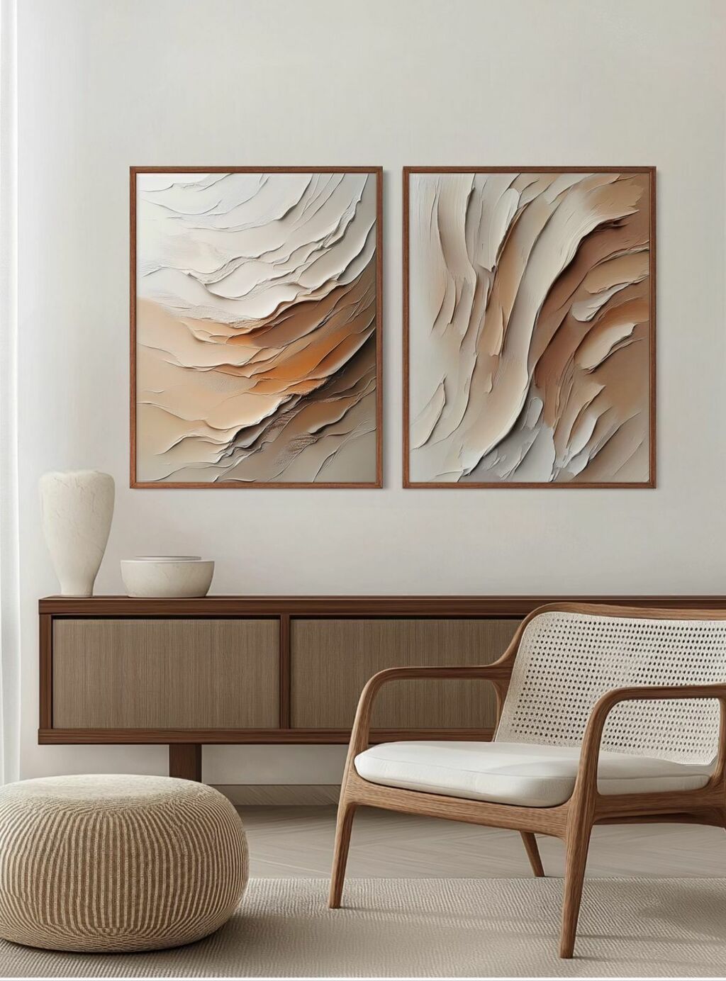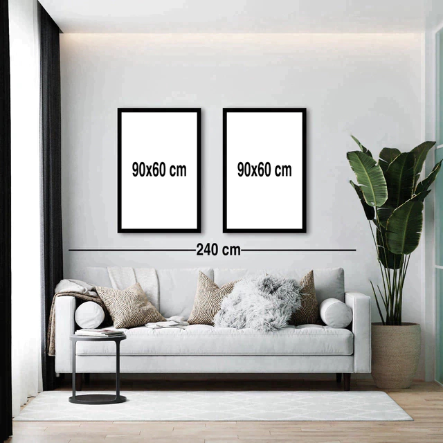 Para saber o tamanho ideal do conjunto de quadros para o seu ambiente é necessário ter a metragem da parede e do móvel, sofá ou cama que estejam próximos de onde será colocado os quadros. Logo abaixo na ilustração te orientamos para você ter uma noção de tamanho e proporção.