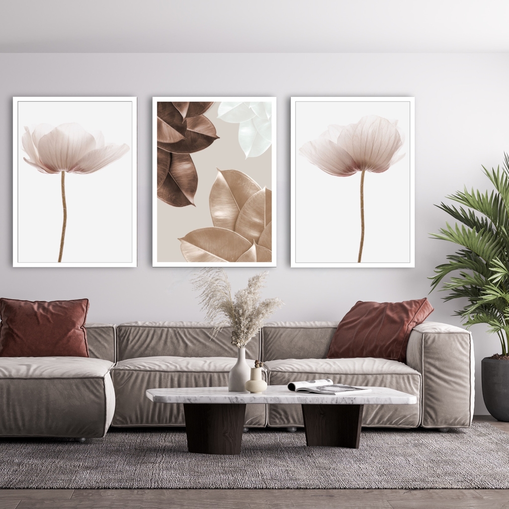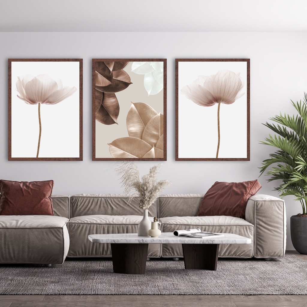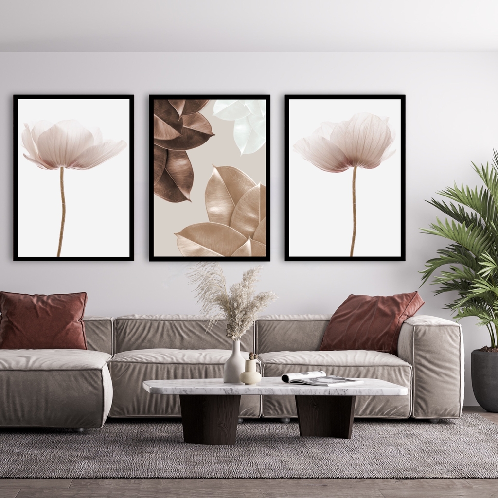 Para saber o tamanho ideal do conjunto de quadros para o seu ambiente é necessário ter a metragem da parede e do móvel, sofá ou cama que estejam próximos de onde será colocado os quadros. Logo abaixo na ilustração te orientamos para você ter uma noção de tamanho e proporção.