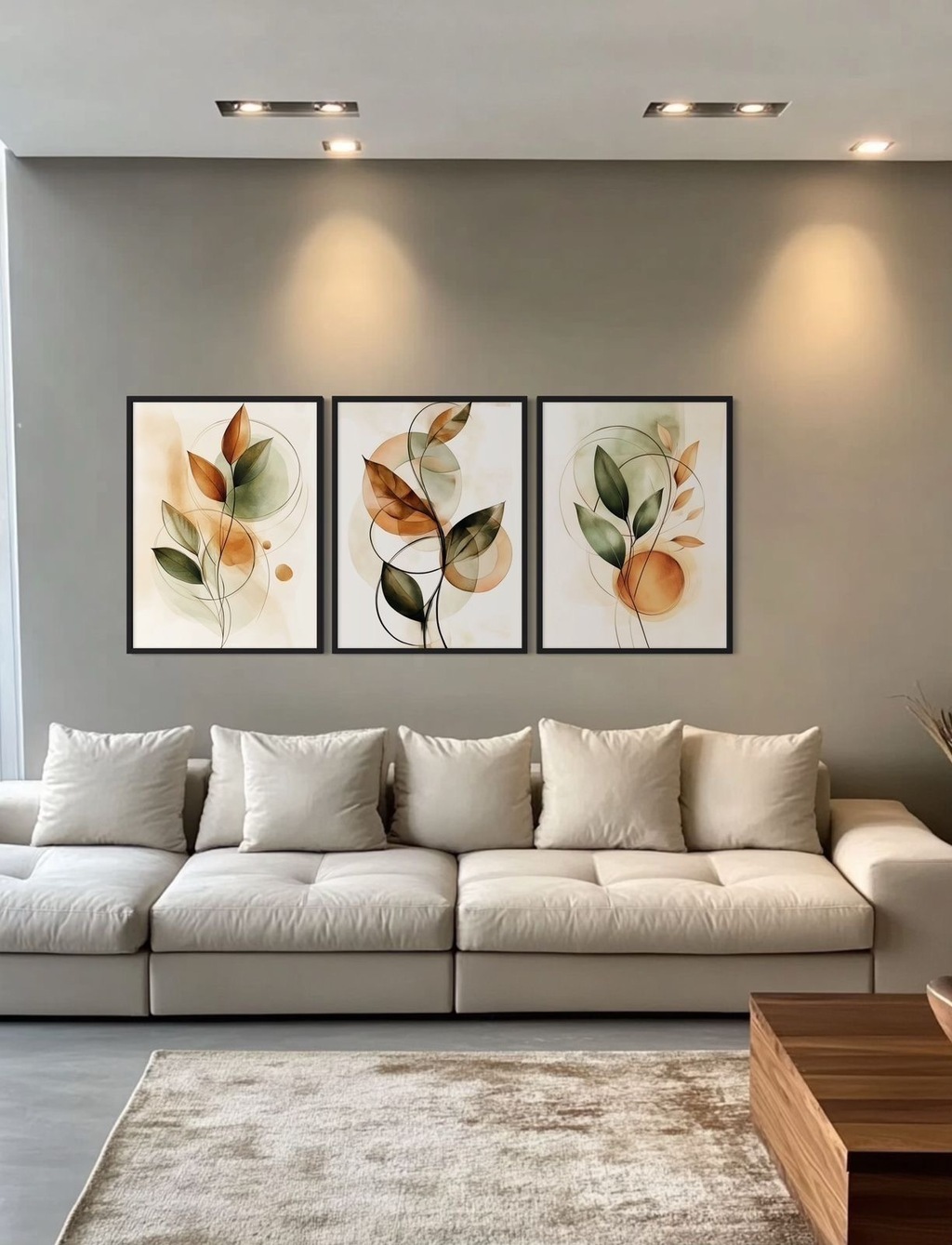 Para saber o tamanho ideal do conjunto de quadros para o seu ambiente é necessário ter a metragem da parede e do móvel, sofá ou cama que estejam próximos de onde será colocado os quadros. Logo abaixo na ilustração te orientamos para você ter uma noção de tamanho e proporção.