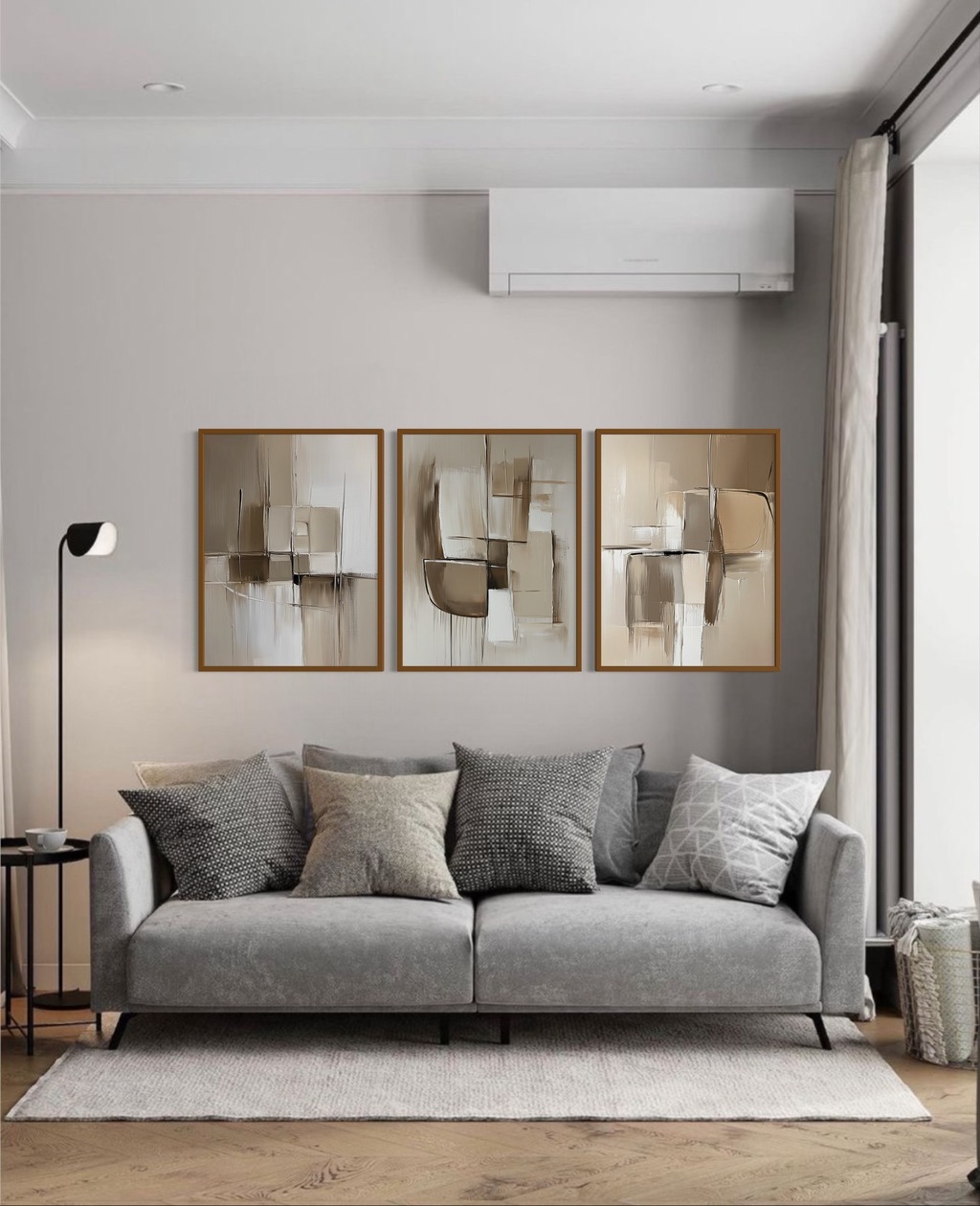 Para saber o tamanho ideal do conjunto de quadros para o seu ambiente é necessário ter a metragem da parede e do móvel, sofá ou cama que estejam próximos de onde será colocado os quadros. Logo abaixo na ilustração te orientamos para você ter uma noção de tamanho e proporção.