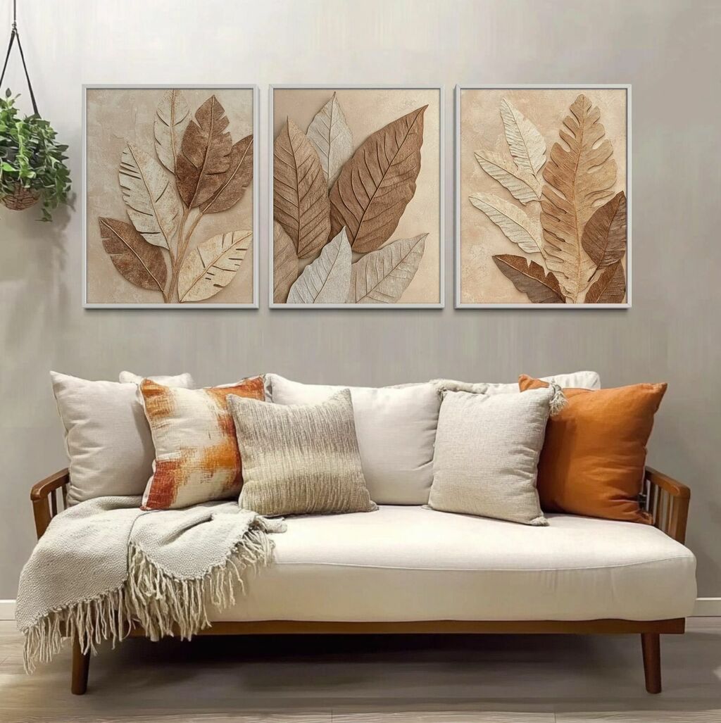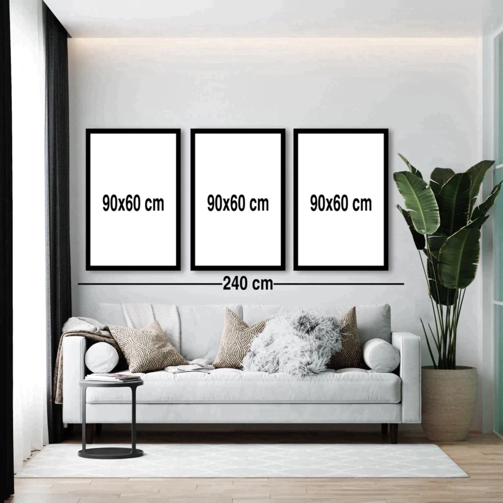 Para saber o tamanho ideal do conjunto de quadros para o seu ambiente é necessário ter a metragem da parede e do móvel, sofá ou cama que estejam próximos de onde será colocado os quadros. Logo abaixo na ilustração te orientamos para você ter uma noção de tamanho e proporção.