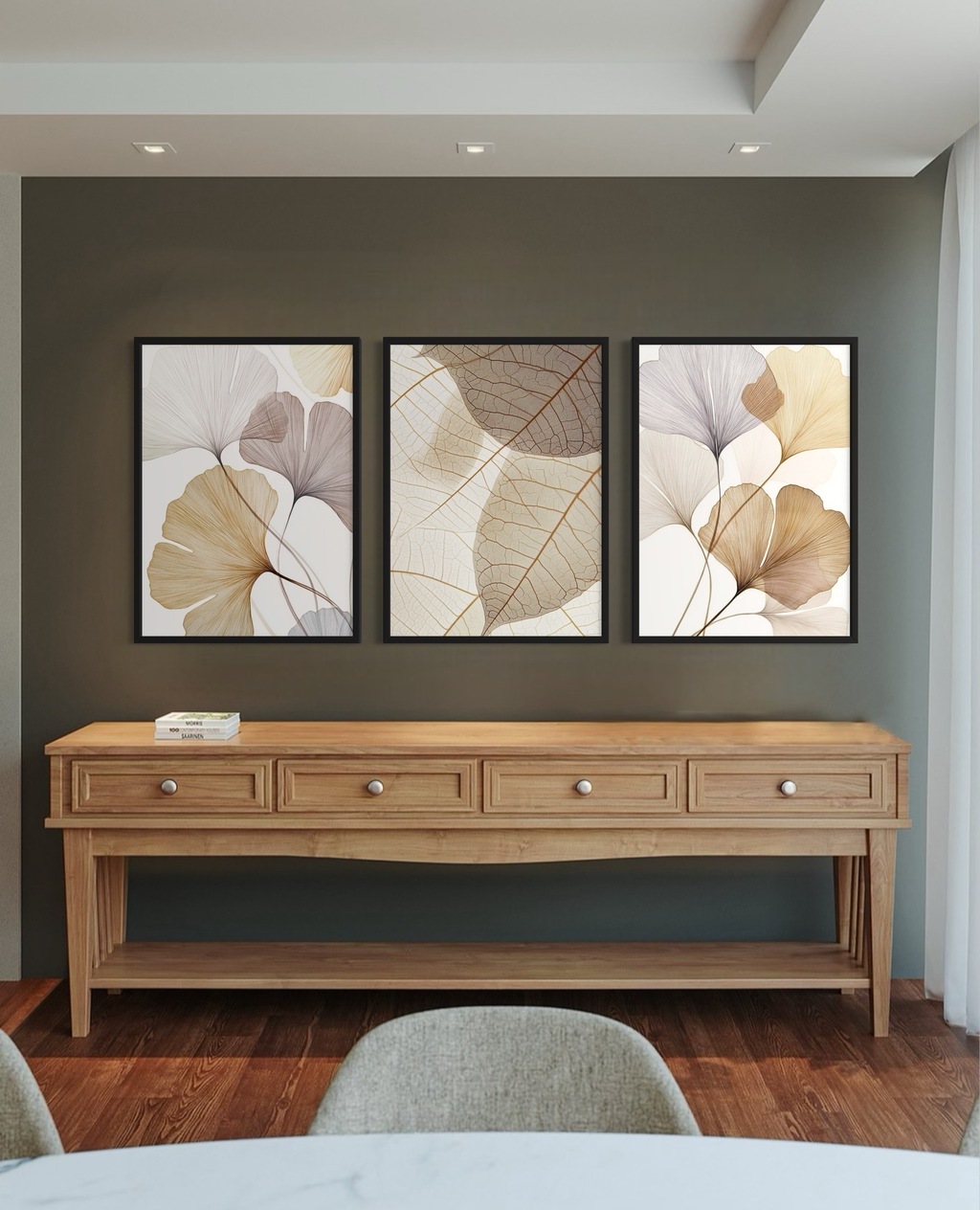 Para saber o tamanho ideal do conjunto de quadros para o seu ambiente é necessário ter a metragem da parede e do móvel, sofá ou cama que estejam próximos de onde será colocado os quadros. Logo abaixo na ilustração te orientamos para você ter uma noção de tamanho e proporção.